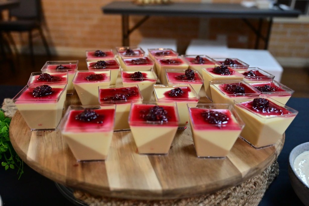 12 x panna cotta – topped with berry compote